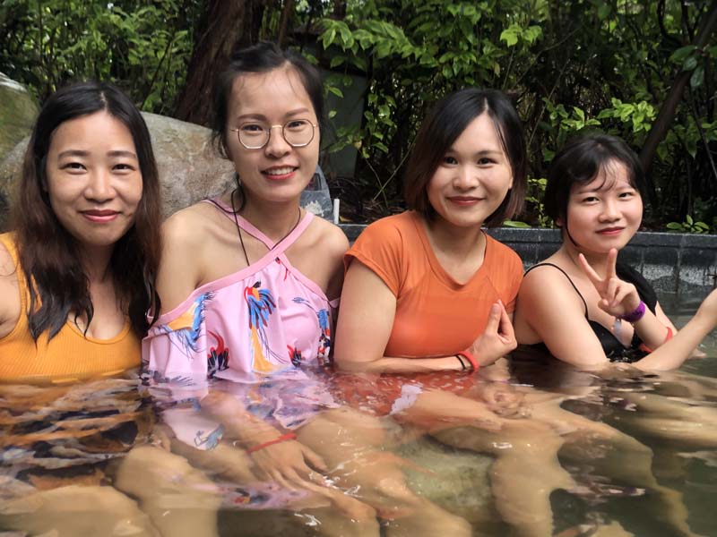 伙伴們浸泡在大大小小溫暖的湯泉之中